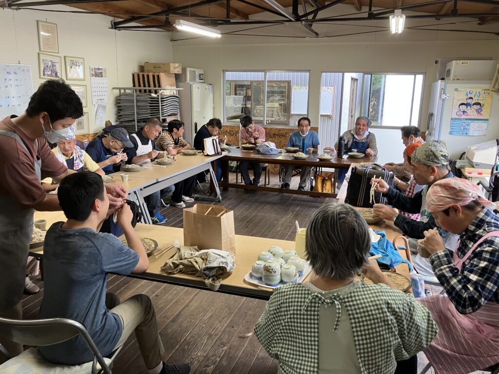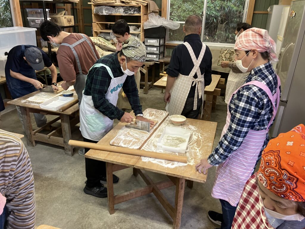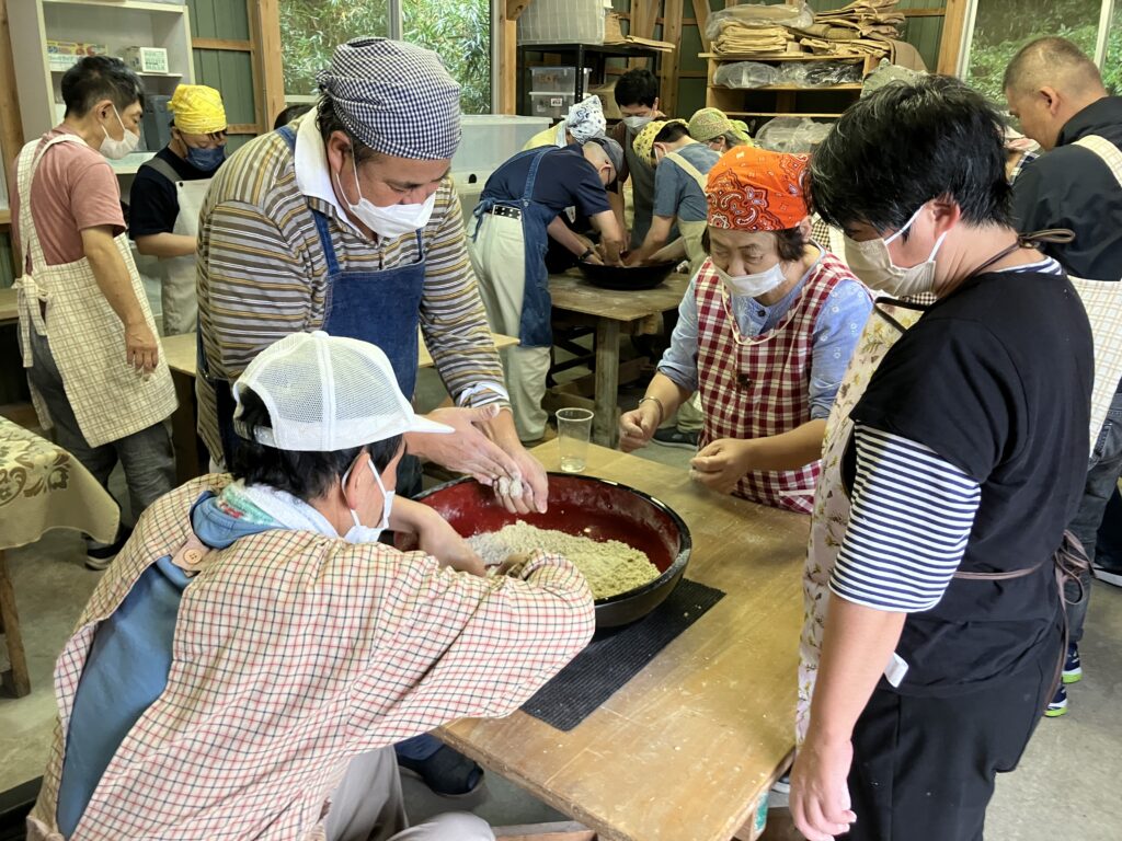 この日毎年恒例、つどいの会16名がそば打ちを楽しまれました。太い蕎麦も美味しかったです。